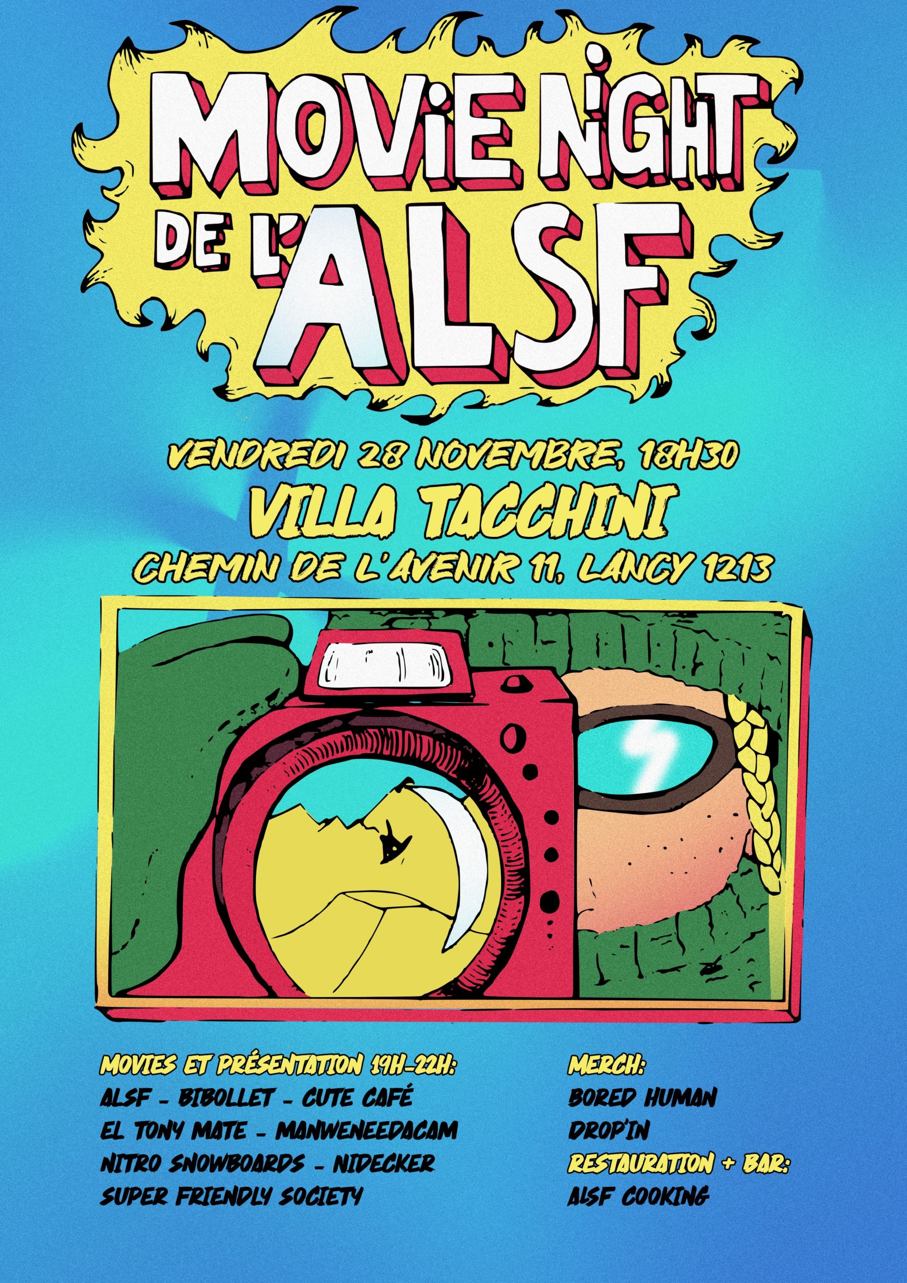 Le 14 décembre 2024, en collaboration avec Fonction:cinéma de la maison des arts du Grütli, l’ALSF vous présente la Movie Night (Rue du Général-Dufour 16, 1211 Geneva) ! Plusieurs films de snowboard et de ski seront à l’affiche. On vous les révèlera au fur et a mesure sur les réseaux.